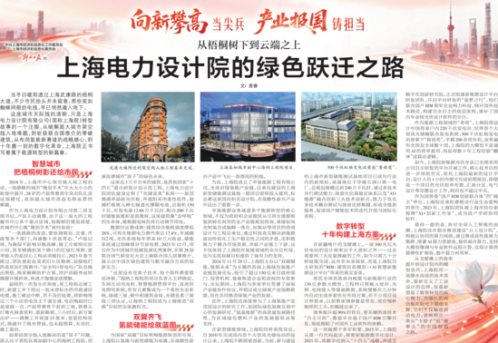 《解放日报》:从梧桐树下到云端之上,上海电力设计院有限公司的绿色跃迁之路