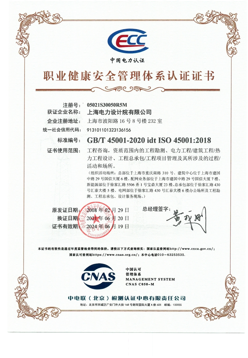 职业健康安全管理体系认证证书
